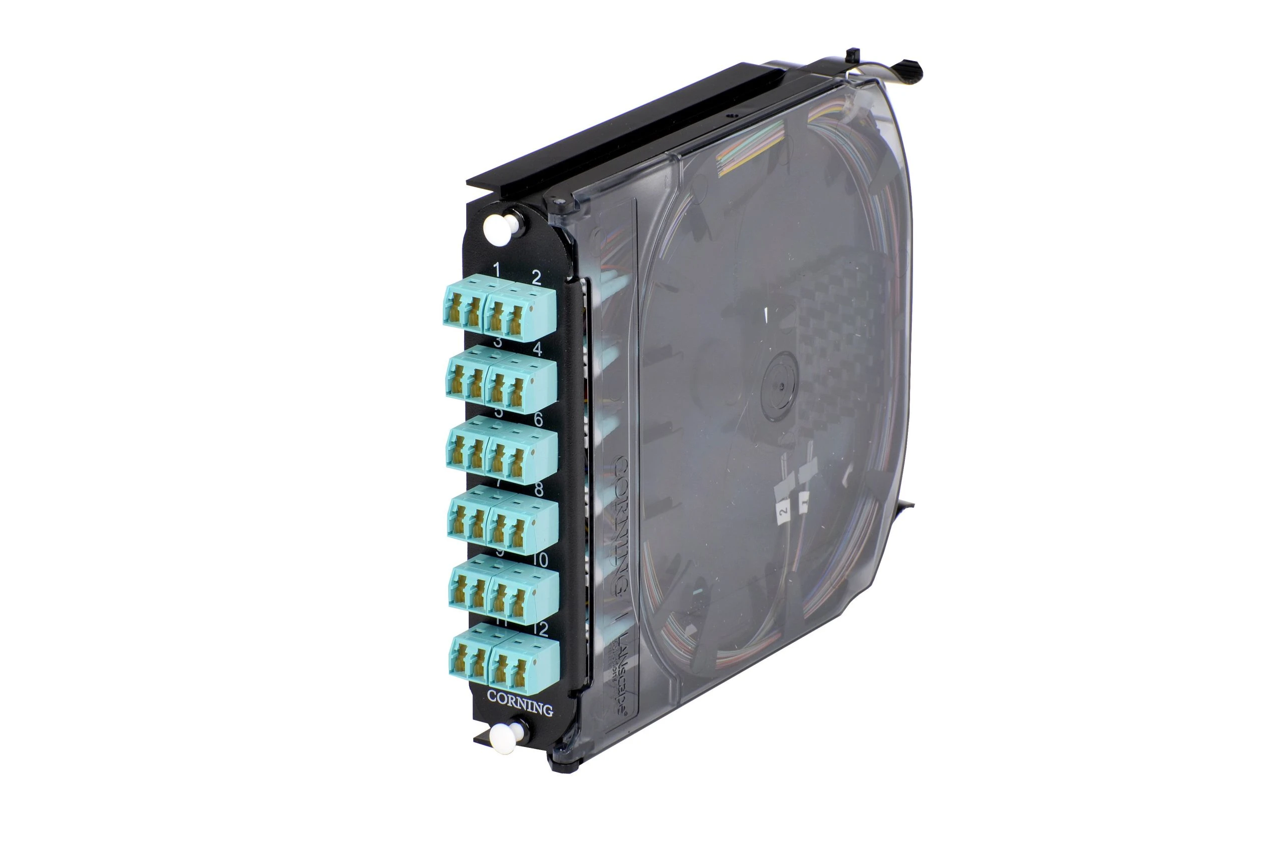 CCH Pigtailed Splice Cassette 24 F, LC duplex shuttered, 50 µm multimode (OM4)